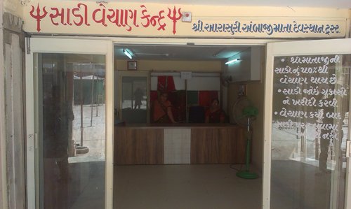 અંબાજી મંદીર પરીસરમાં સાડી વેચાણ કેન્દ્ર આવેલું છે. અહીં માતાજીને અપર્ણ કરેલ સાડી મૂળ કીંમતથી 50% ના દરે વેચાણ કરવામાં આવે છે. સર્વે માઈભક્તો મંદીર ટ્રસ્ટનાં સાડી કેન્દ્રનો લાભ લઈ શકે છે.